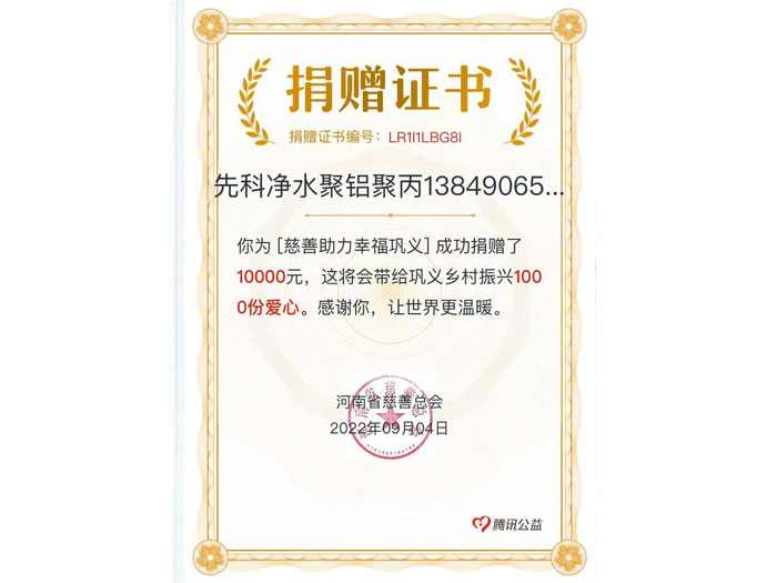 鞏義市先科凈水材料廠20多年來始終以凈化水源,造福人類為己任,2011年收購鞏義市興龍凈水材料廠投資4000萬建設(shè)導(dǎo)熱油鍋爐生產(chǎn)線2條,噴霧干燥塔2座成為目前國內(nèi)外較大的無機(jī)凈水材料生產(chǎn)企業(yè)。有職工50余名,年產(chǎn)各種凈水材料5萬噸,產(chǎn)值上億。本企業(yè)生產(chǎn)的主要產(chǎn)品有聚合氯化鋁,聚氯化鋁,聚合硫酸鐵,堿式氯化鋁,聚丙烯酰胺(陰,陽,非離子)……